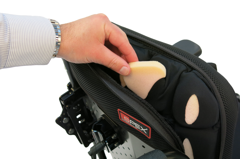 Easily solve upper torso needs for most wheelchair users with the Spex exceptional upholstery section. Incorporates Spex contouring cube system to allow on-the-spot customisations for torso comfort and asymmetry needs.
