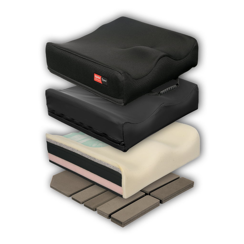 The Spex cushion is designed to create the optimum pelvic foundation for the wheelchair user. Well established and preferred by many professionals for its capacity to adjust on-the-spot in solving for both symmetrical and asymmetrical sitting postures. Spex cushion technology provides the key solution to positioning and levelling the pelvis correctly and effectively by strategic placement in the adjustable base cell system to further contour the cushion for correction or control.